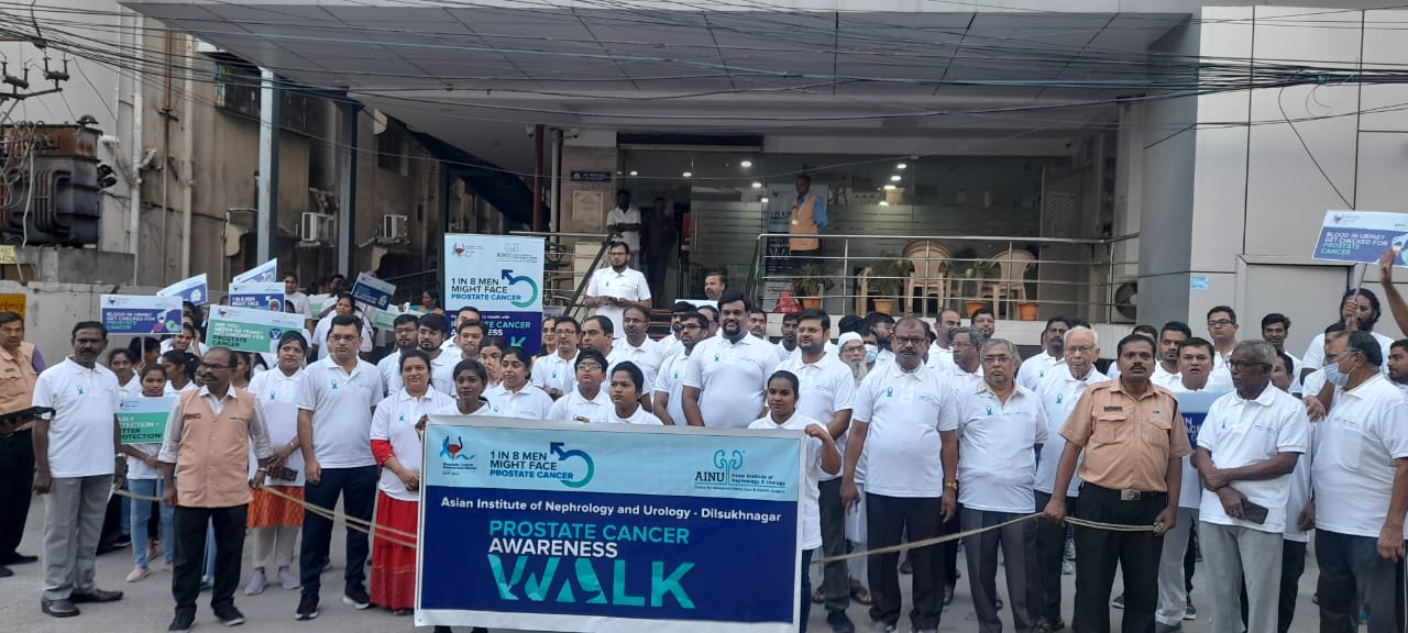 Senior Consultant Urologist Dr. N. Srinivas from the Asian Institute of Nephrology and Urology (AINU), Dilsukhnagar facility, emphasized that everyone should be aware of prostate cancer, which has a one in seven chance of affecting men. In the context of marking September as Prostate Cancer Awareness Month and creating awareness among the public, an awareness walk was organized on Sunday by the AINU Dilsukhnagar branch. Doctors, staff, and several past patients who were treated for this condition at AINU actively participated in the event.